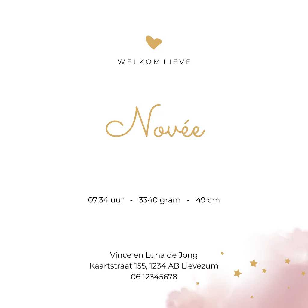 Modern geboortekaartje meisje aquarel roze en foliedruk