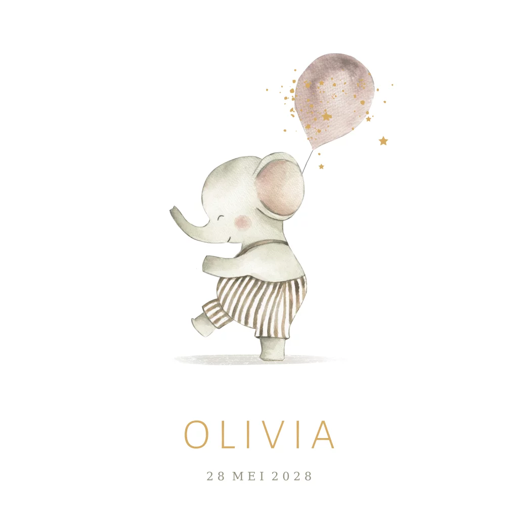 Lief geboortekaartje voor een meisje met olifant en ballon