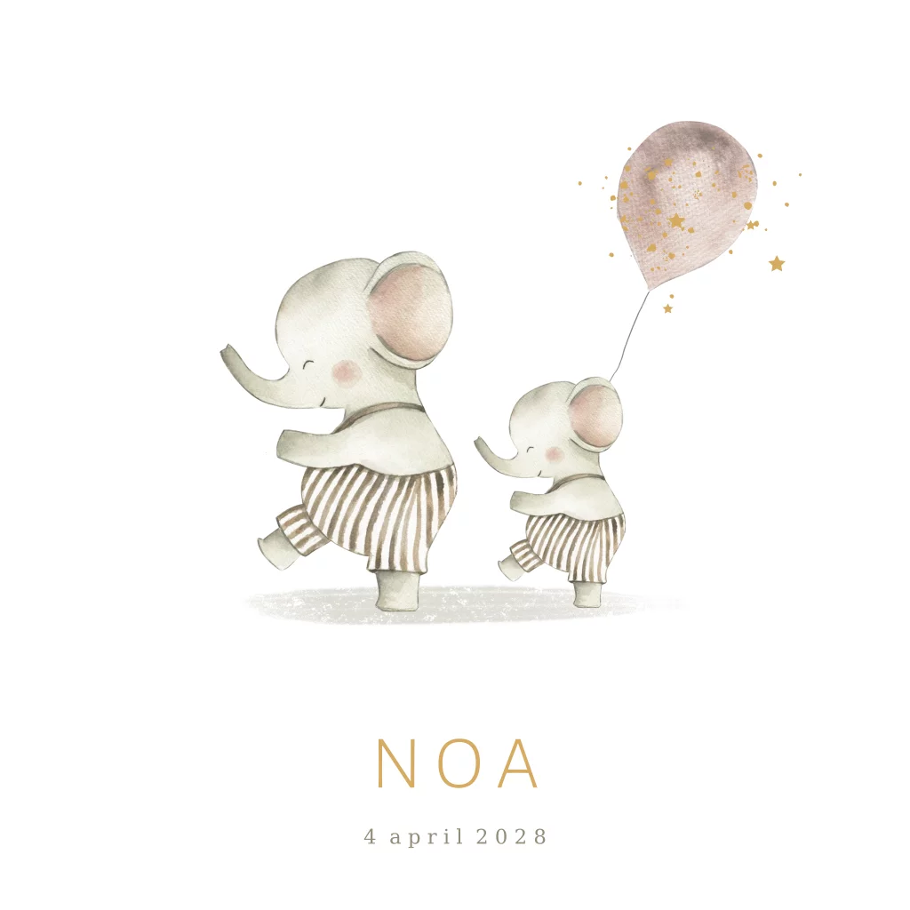Lief geboortekaartje voor 2e kindje olifanten en ballon