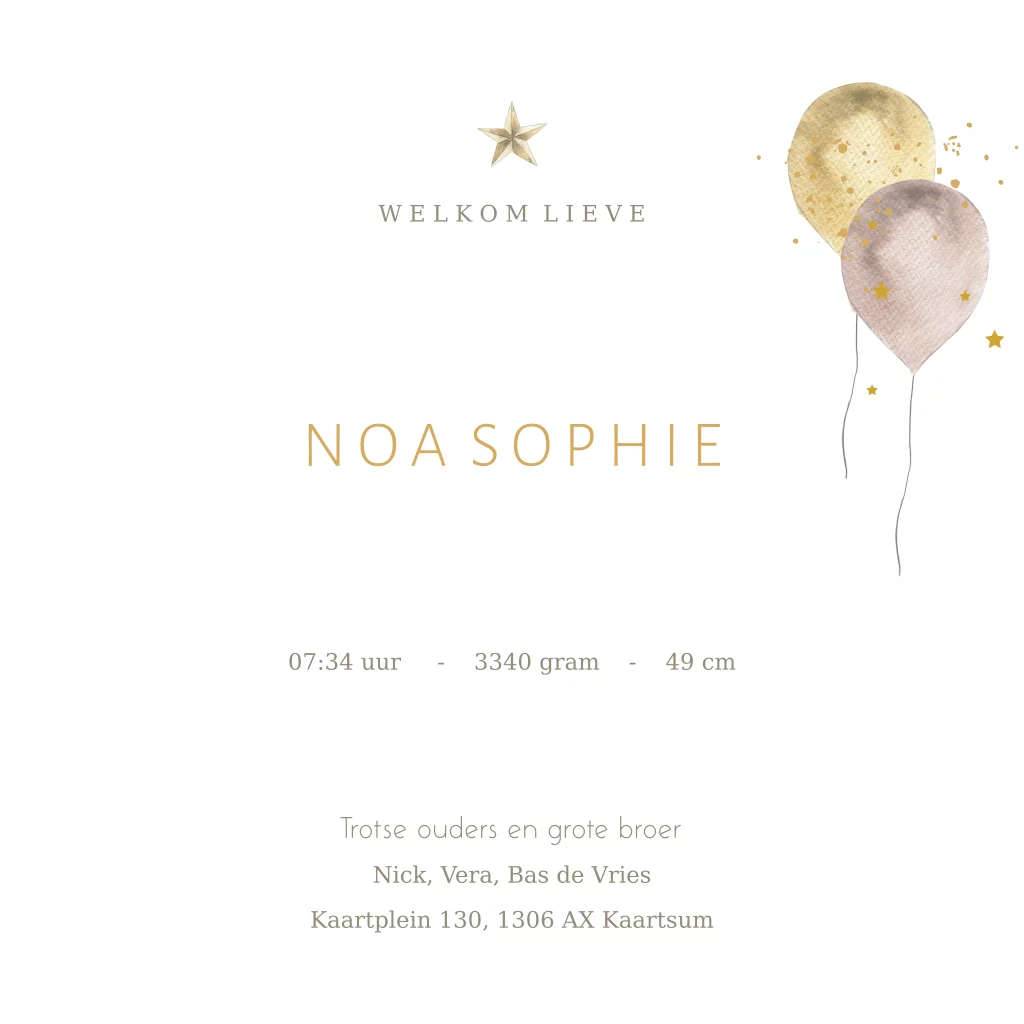 Geboortekaartje voor de geboorte van een zusje. Een tweede kindje met olifanten en een ballon. (23936)