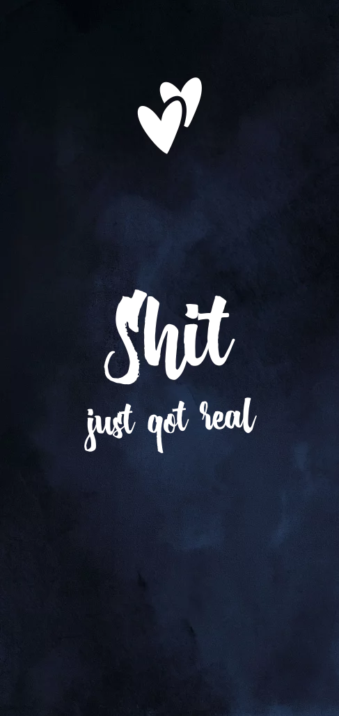 Grappige trouwkaart met tekst shit just got real in goudfolie