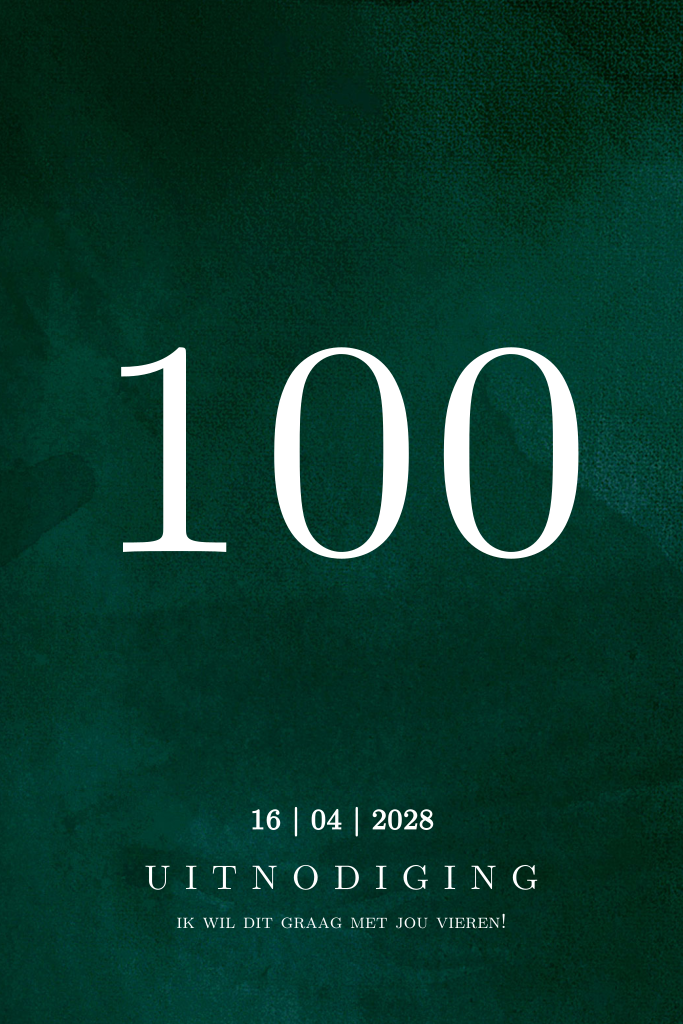 Hippe uitnodiging 100e verjaardag velvet look groen en goudfolie