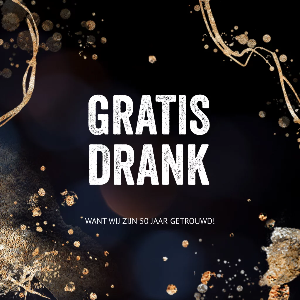 Moderne uitnodiging met de tekst: Gratis drank. Voor verjaardag, feestje, jubileum of borrel. (23716) (Deze kaart heeft nu ronde hoeken a € 0,30 extra per kaart, in je kunt dit ook met rechte hoeken bestellen)