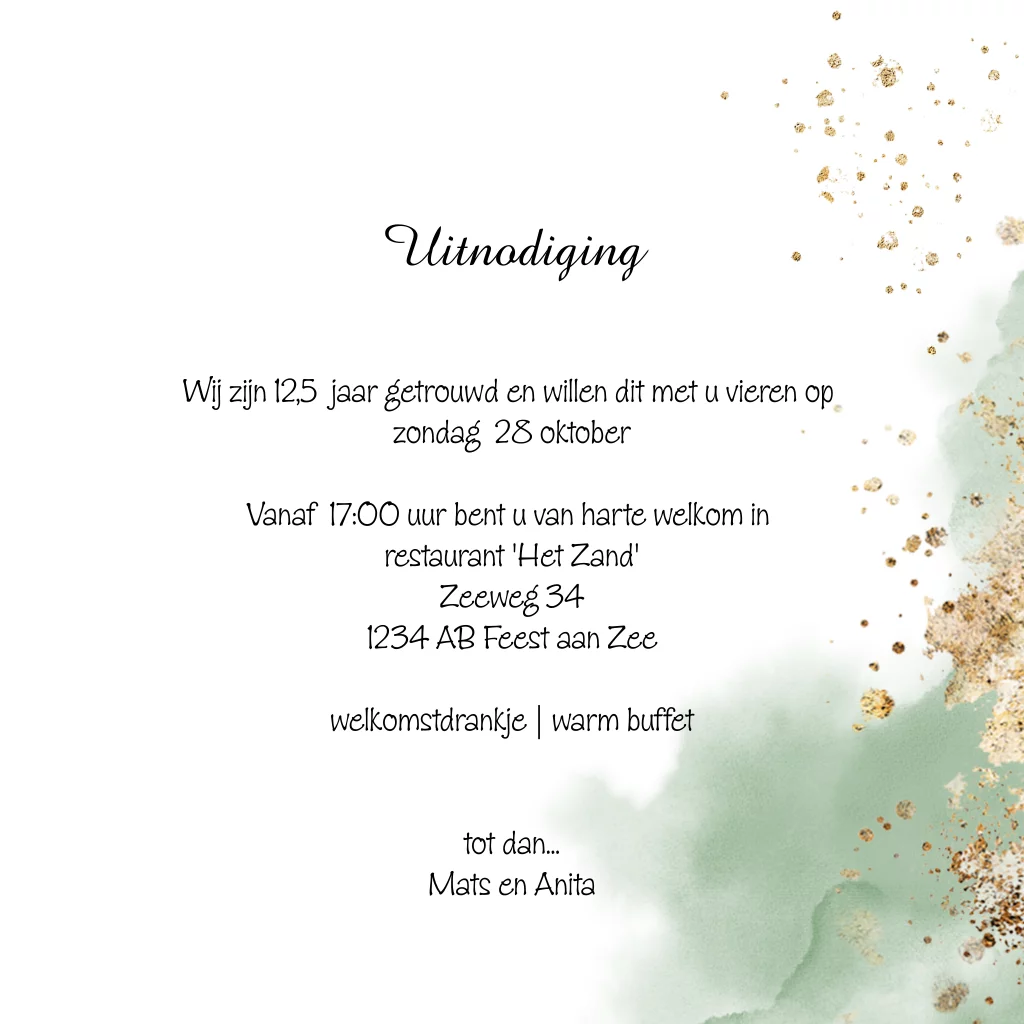 Jubileum 12,5 jaar uitnodiging groen met waterverf