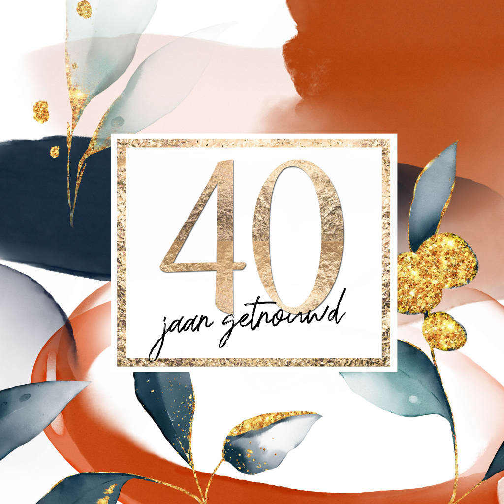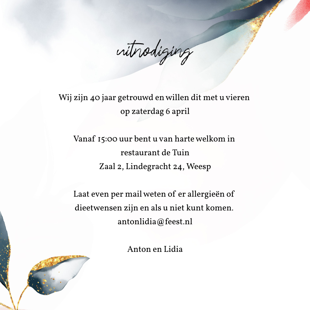 Jubileum uitnodiging 40 jaar getrouwd met abstracte bloem en prachtige feestelijke kleuren. (23282)