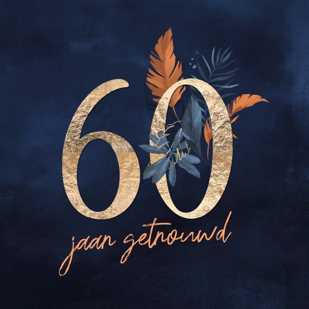 Mooie uitnodiging 60 jaar getrouwd goudlook jaartal en blad