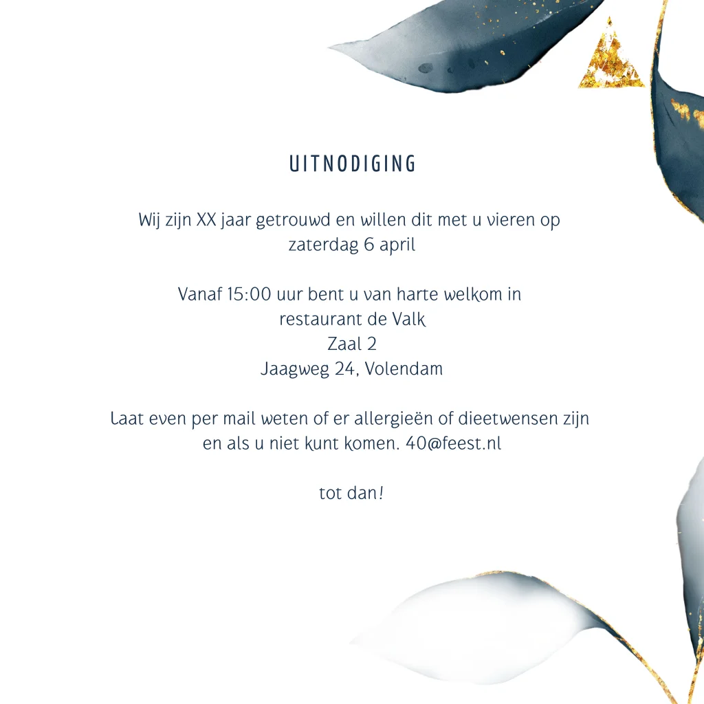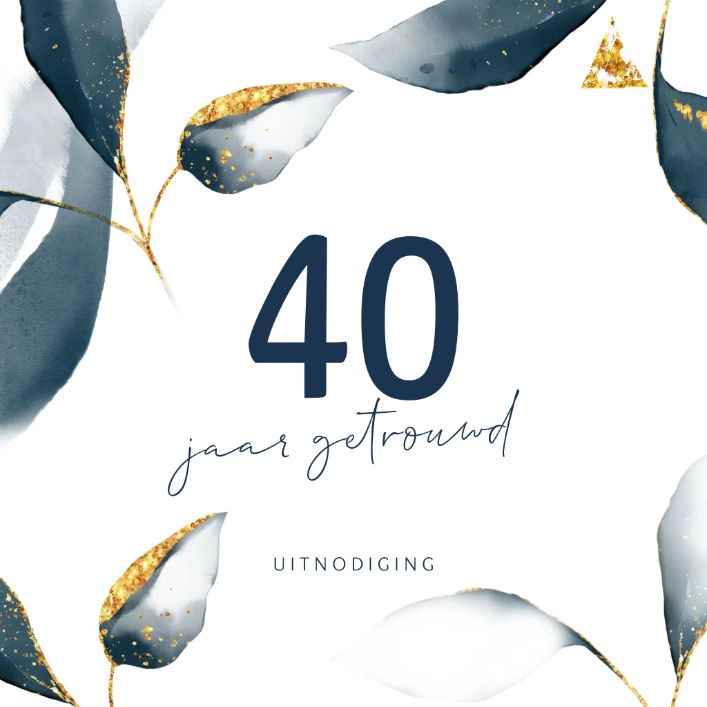 Jubileum uitnodiging 40 jaar getrouwd met blauw blad