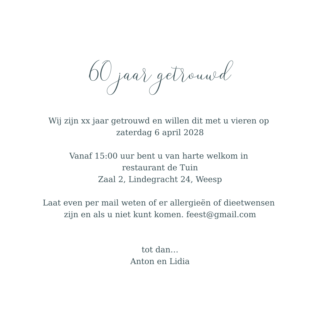 Jubileum uitnodiging 60 jaar getrouwd met folie