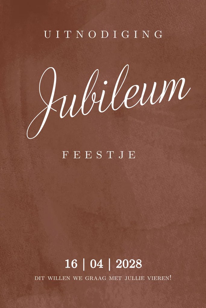 Uitnodiging voor een jubileum .. jaar getrouwd met foliedruk en cognac kleurige achtergrond. Bruiloftsgasten zullen dit unieke en kleurrijke ontwerp zeker opvallen! De jubileumkaart uitnodiging met goudfolie is een echte blikvanger. Deze kaart is perfect voor een herfst- of winterbruiloft. (23205)