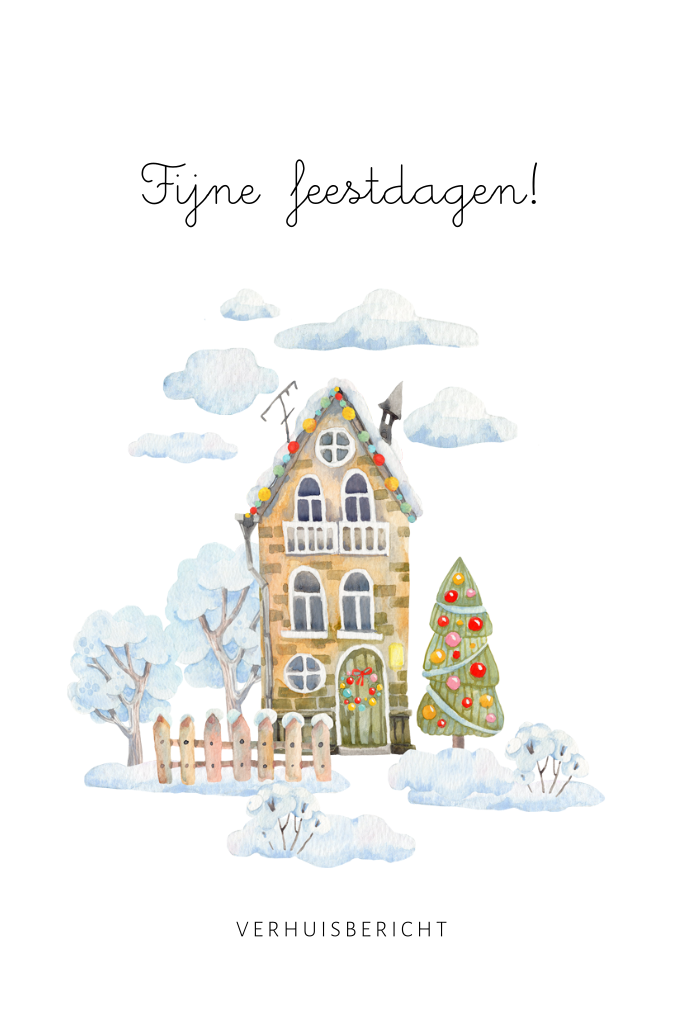 Kerst verhuiskaart winterlandschap en huisje. (23658)