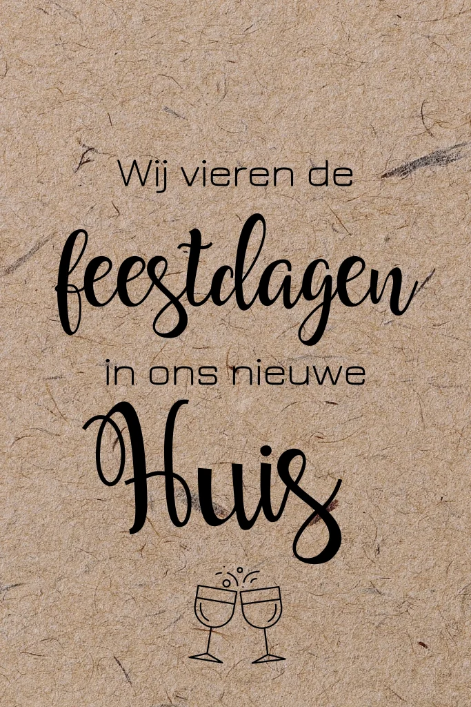 Stoere enkele kerstkaart met verhuisbericht op kraft-look papier. (24110) wij vieren de feestdagen in ons nieuwe huis