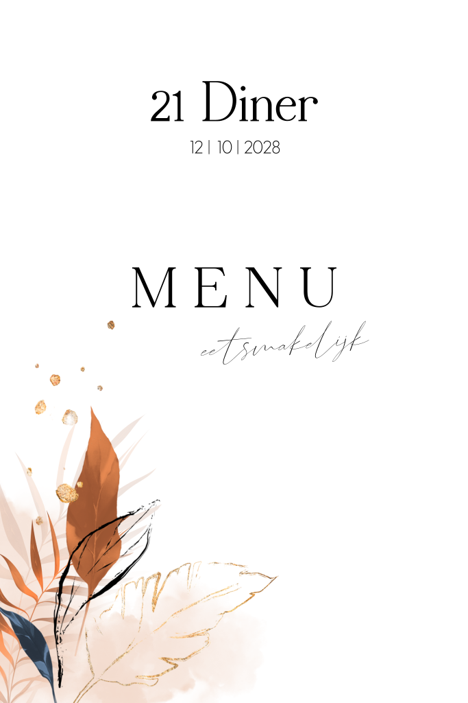 Menukaart 21 diner met exotisch blad watercolor. (23561)