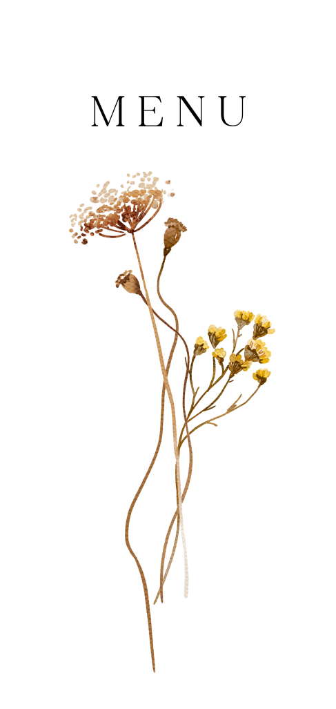 Menukaart met oranje kleurige bloemen