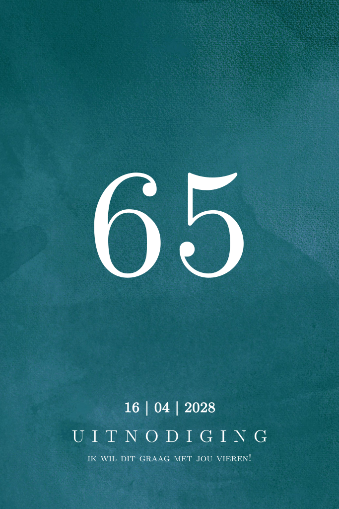 Moderne uitnodiging 65e verjaardag blauw groen met goudfolie