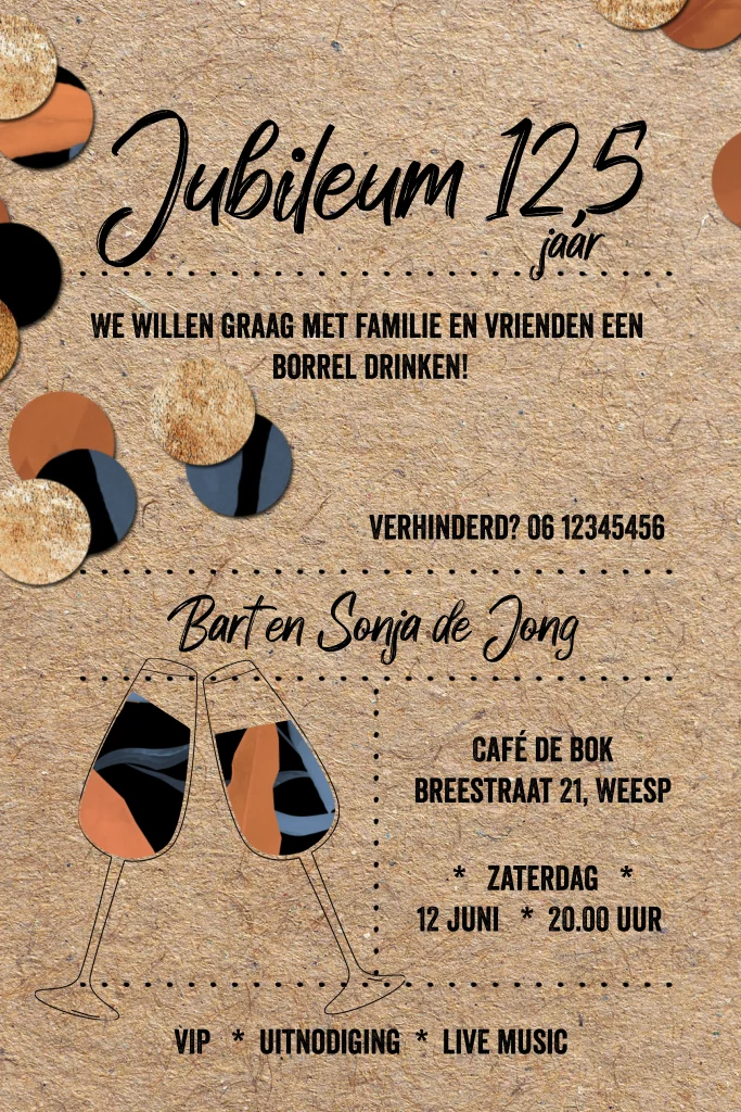 Moderne uitnodiging kraft look jubileum 12,5 jaar getrouwd