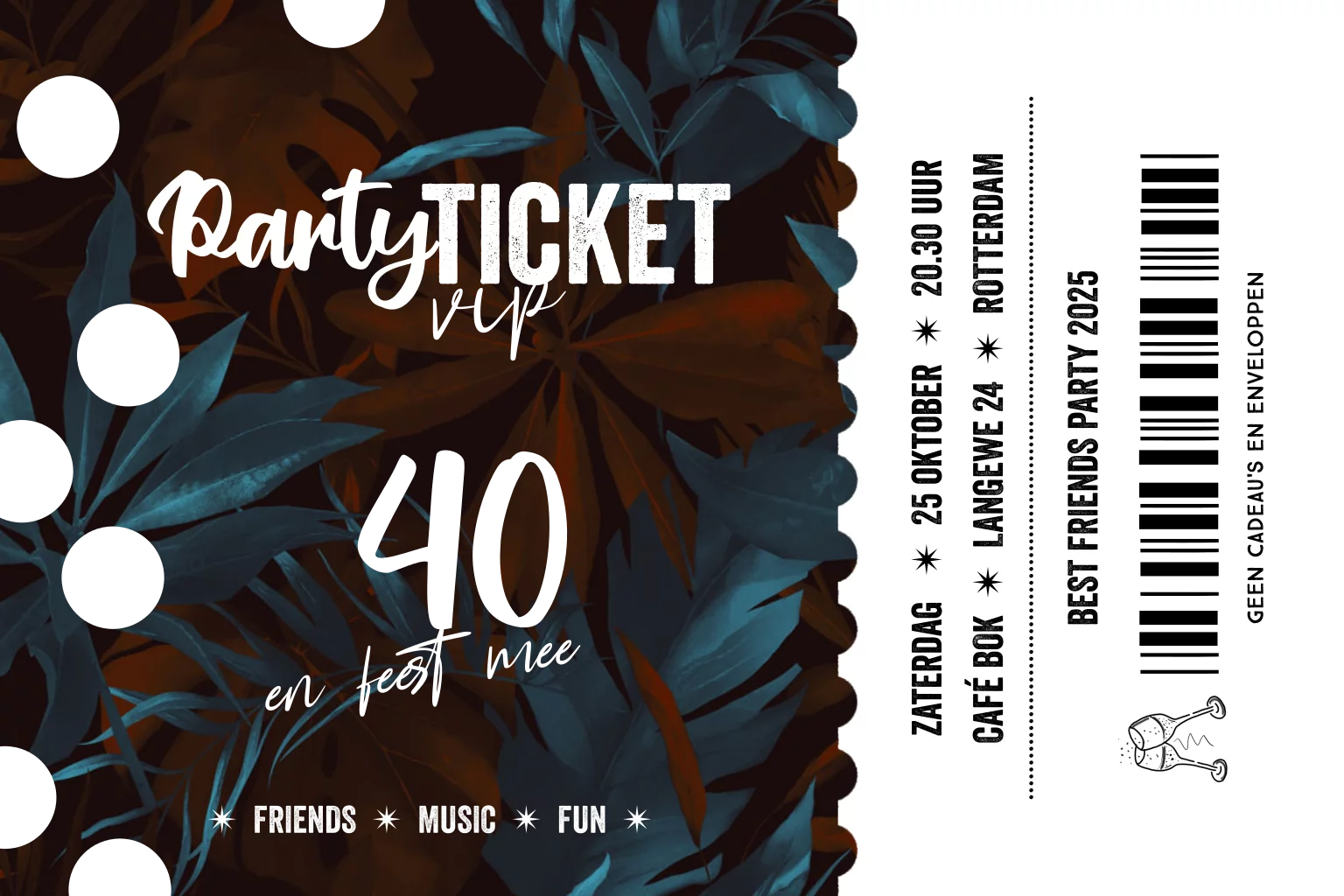 Uitnodiging verjaardag party ticket met foliedruk. (23470)