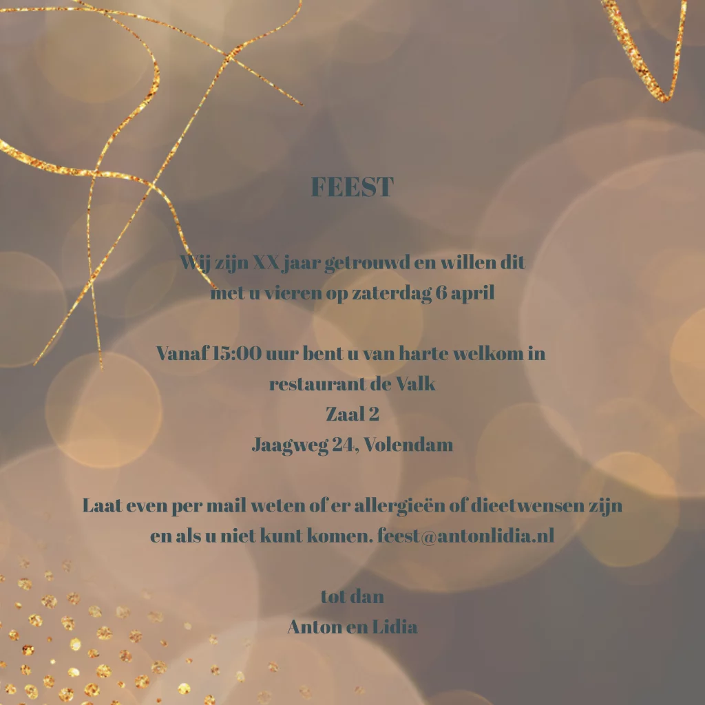 40 jaar getrouwd goud glitter look uitnodiging voor een 40 jaar getrouwd jubileum feestje. De blauwe tekst op de voorkant heeft hoogglans voor een luxe effect (23717)