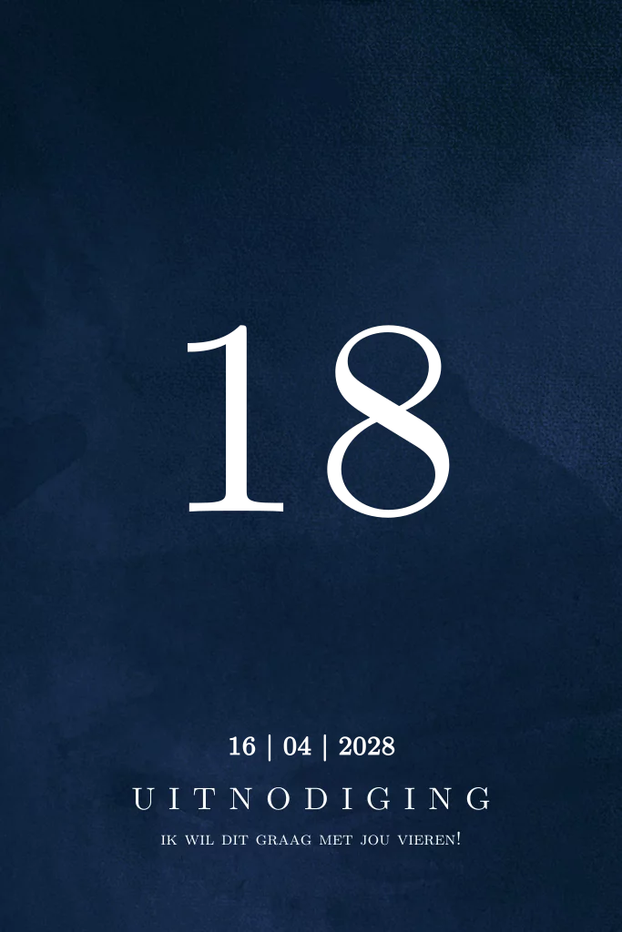 Moderne verjaardagsuitnodiging 18 jaar blauw met goudfolie