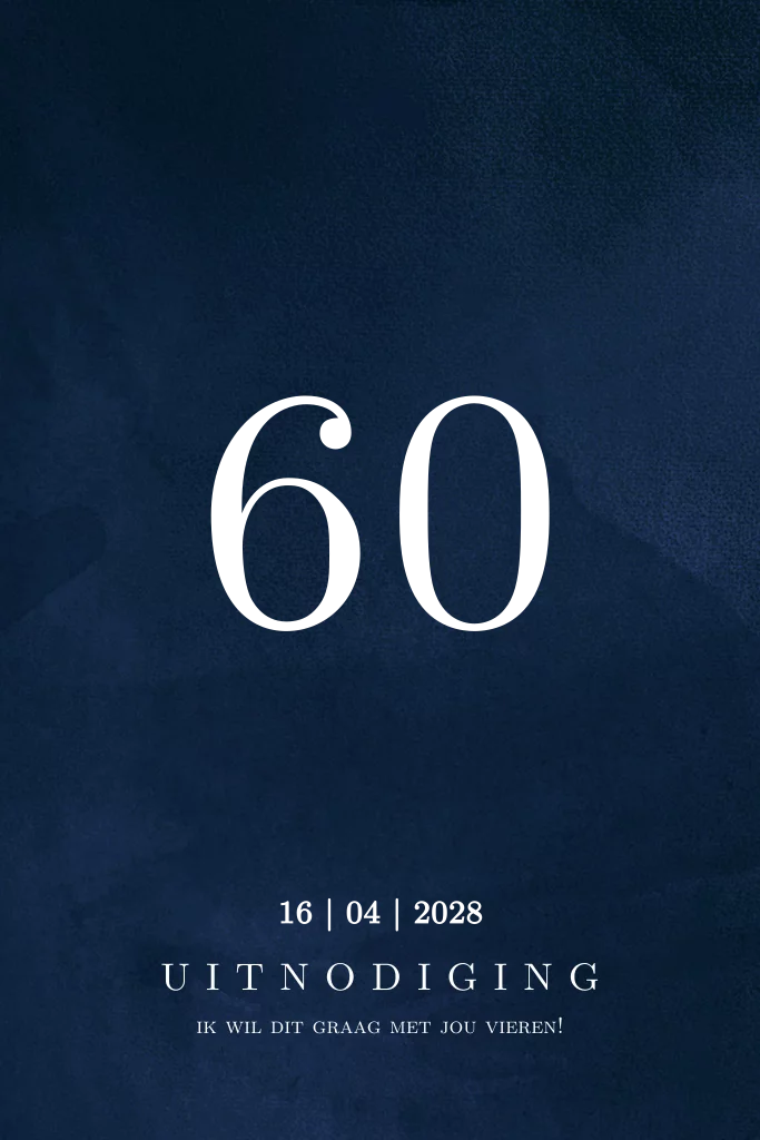 Moderne uitnodiging 60 jaar verjaardag met donker blauwe achtergrond en goudfolie druk. (23206)