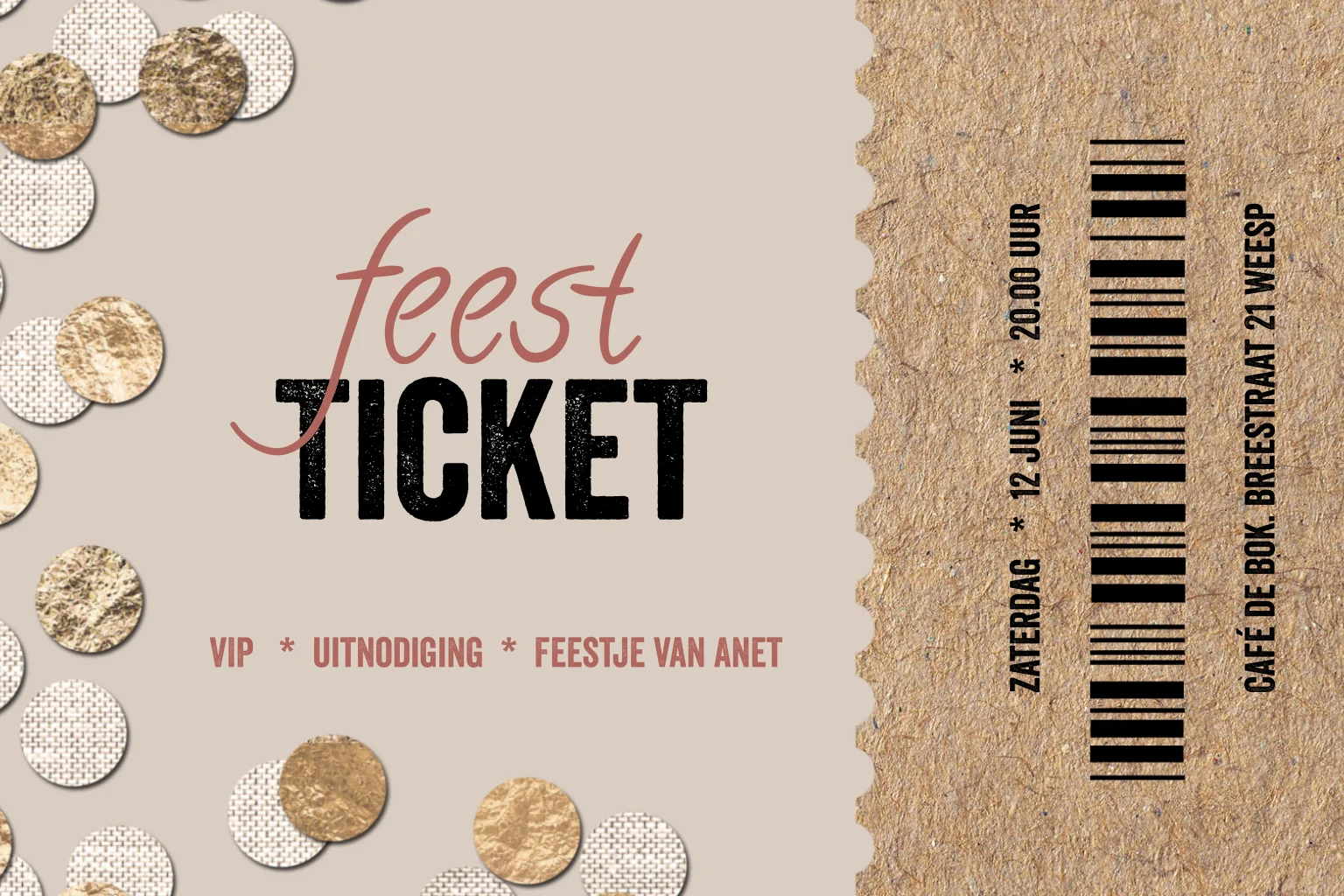 Feestelijke party ticket uitnodiging voor een man of vrouw