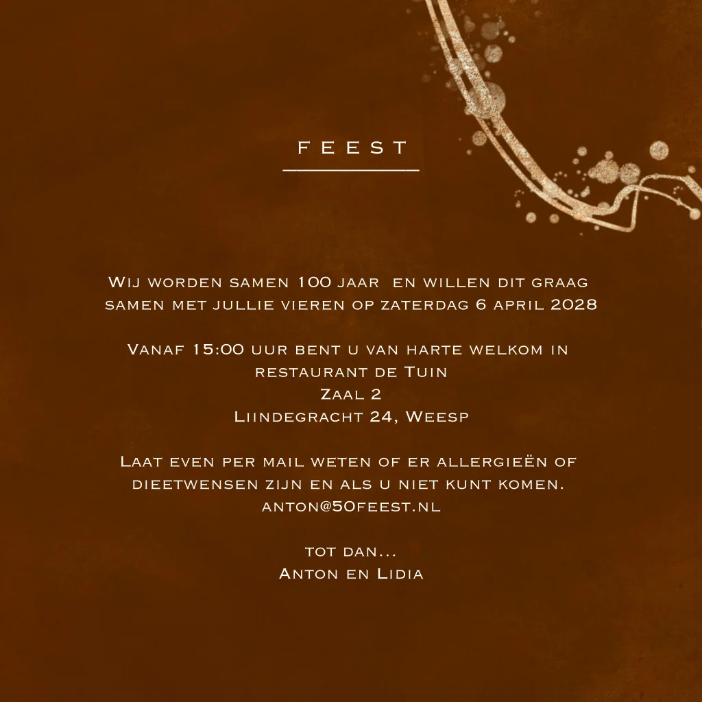 Prachtige uitnodiging dubbelfeest in cognac kleur