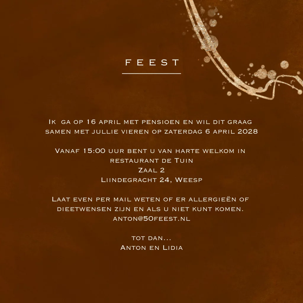 Prachtige uitnodiging pensioenfeest in cognac kleur