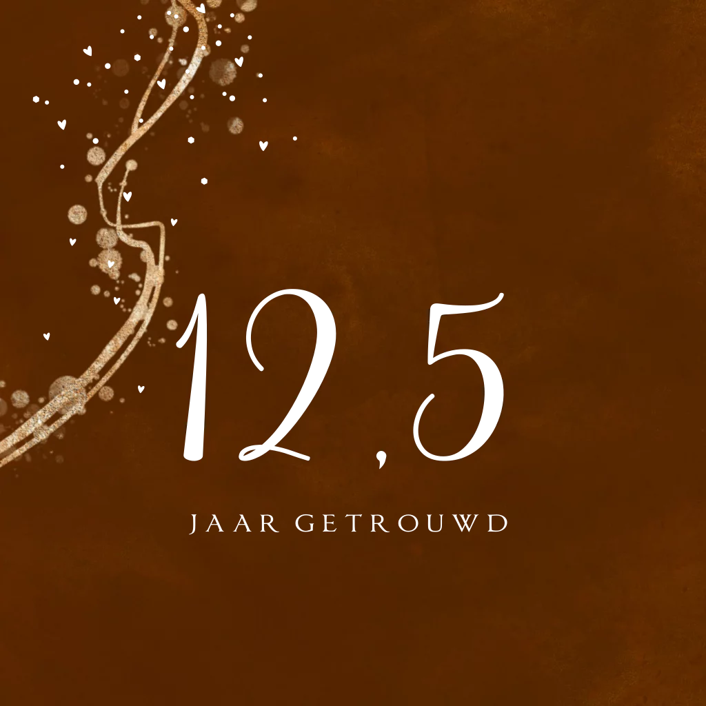 12 en half jaar getrouwd Huwelijksjubileum uitnodiging met goudfolie druk versiering en cognac kleurige achtergrond. (23193)