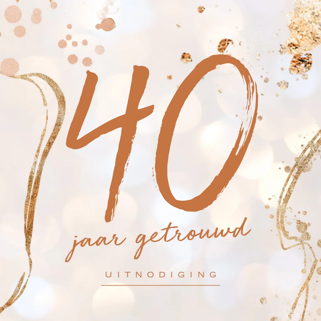 40 jaar getrouwd uitnodiging voor een huwelijksjubileum met verschillende roze tinten en goud kleurige spetters. (23713)