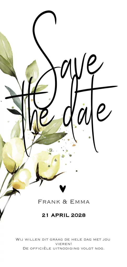 Mooie save the date uitnodiging met witte waterverf bloemen. (23664))