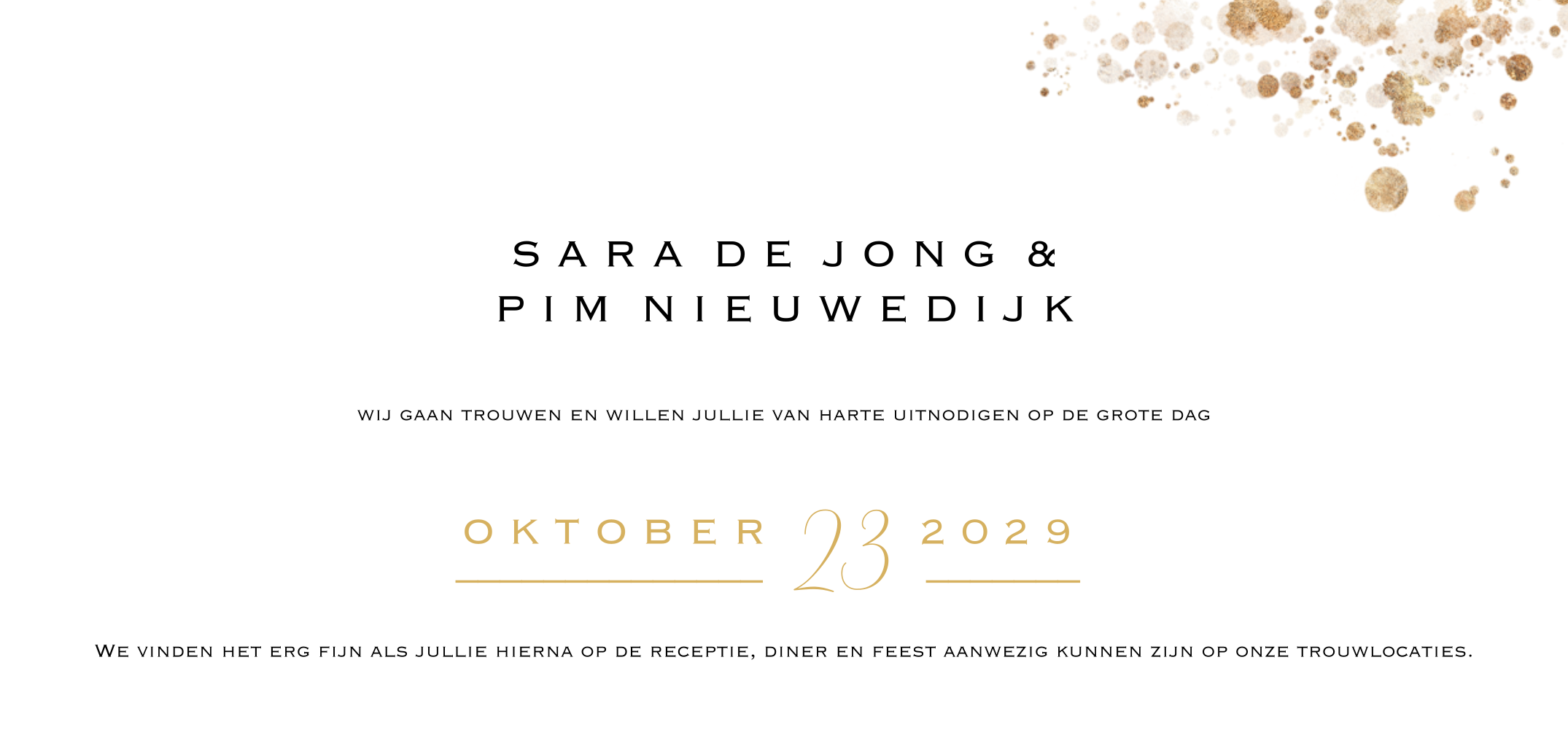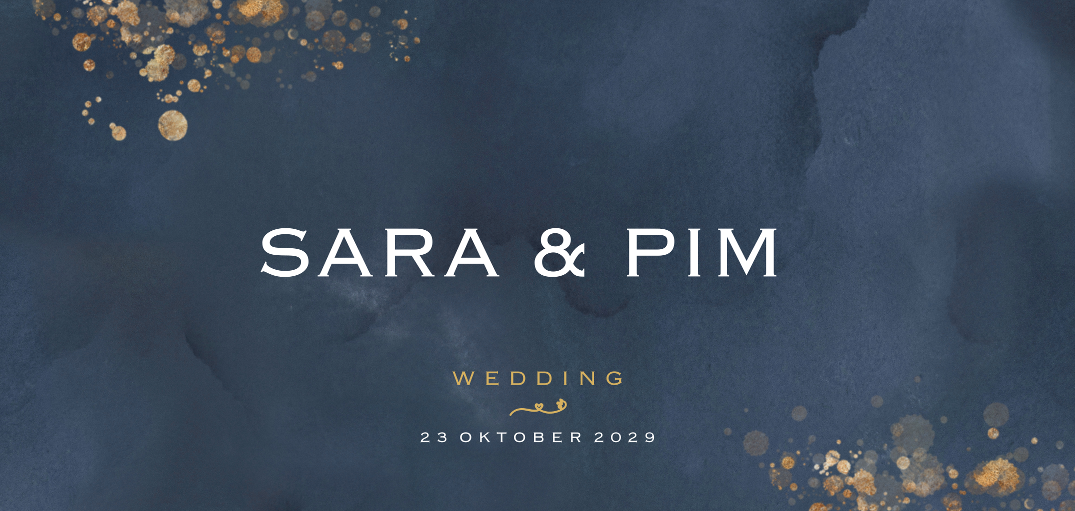 Trouwkaart blauw goudlook en waterverf
