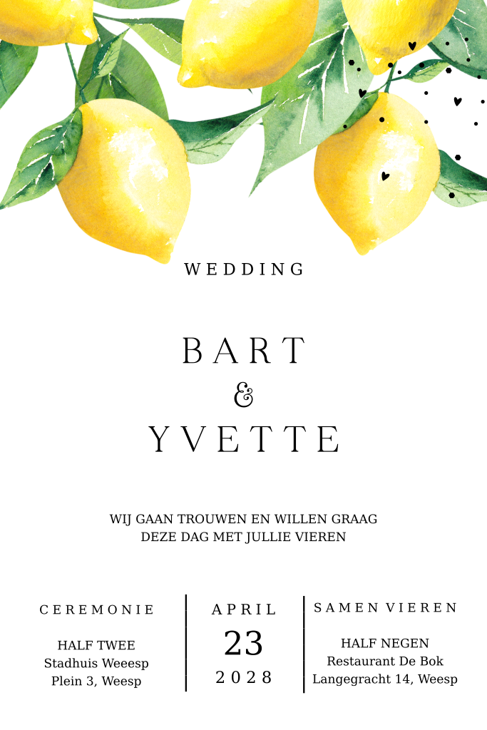 Trouwkaart met ronde hoeken citroen en blaadjes