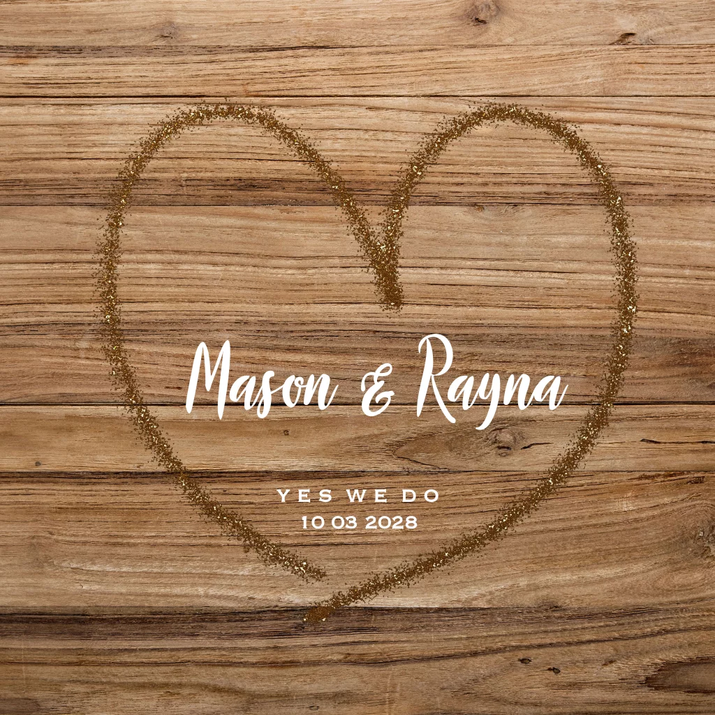 Trouwkaart met houten achtergrond en groot hart