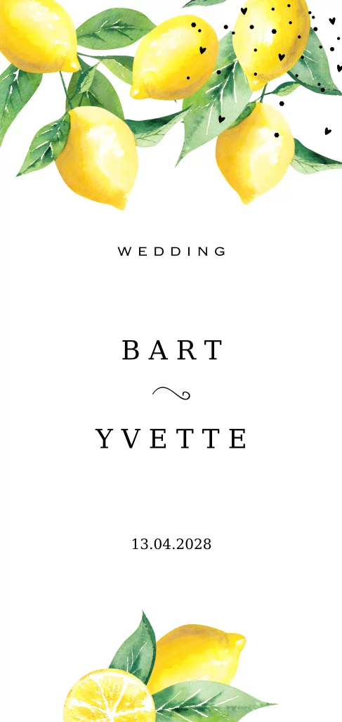 Trouwkaart langwerpig met ronde hoeken citroenen en blaadjes