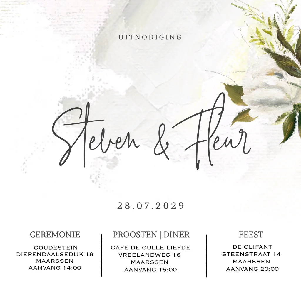 Trouwkaart met witte olieverf bloemen