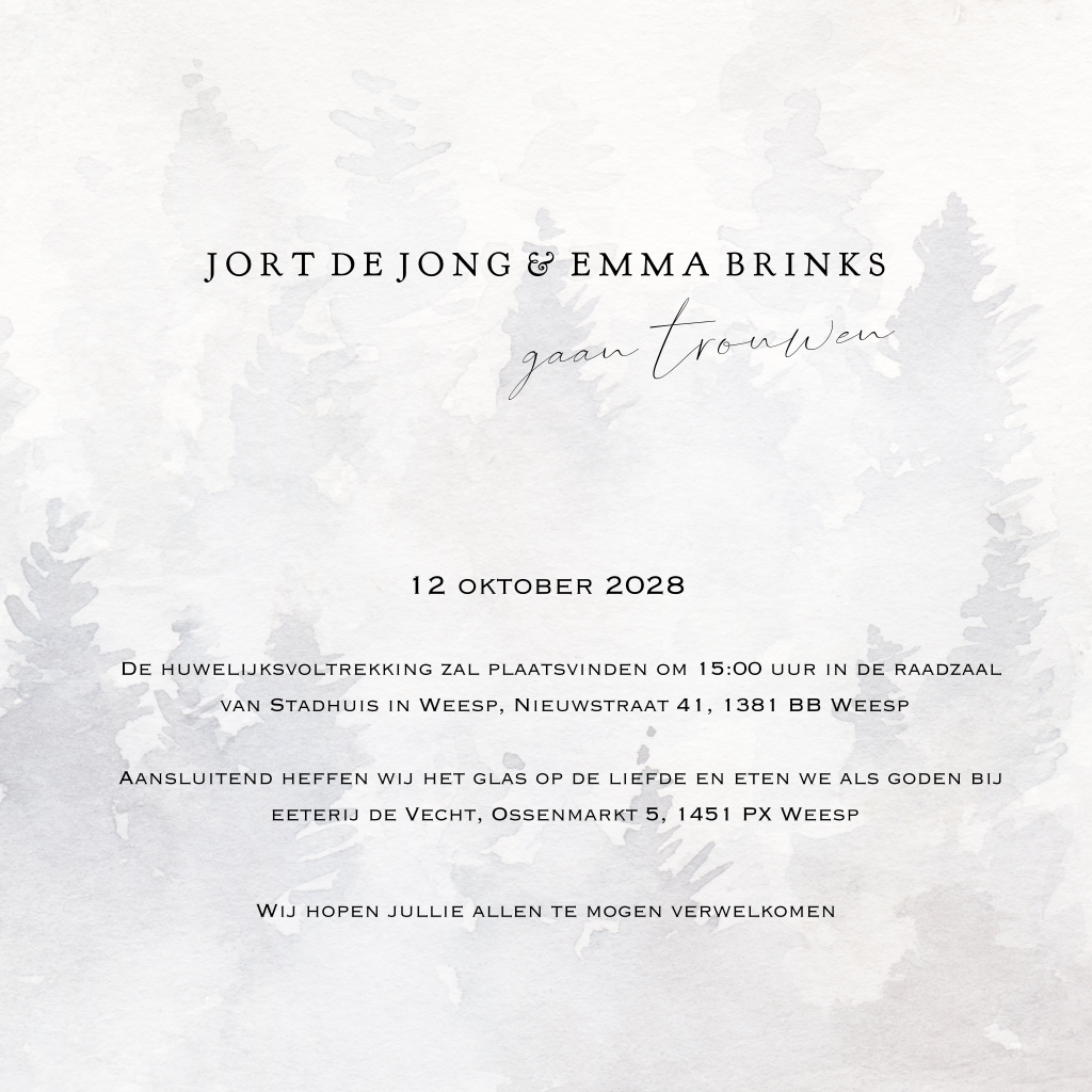 Waterverf trouwkaart in pastelkleuren bos. (23647)