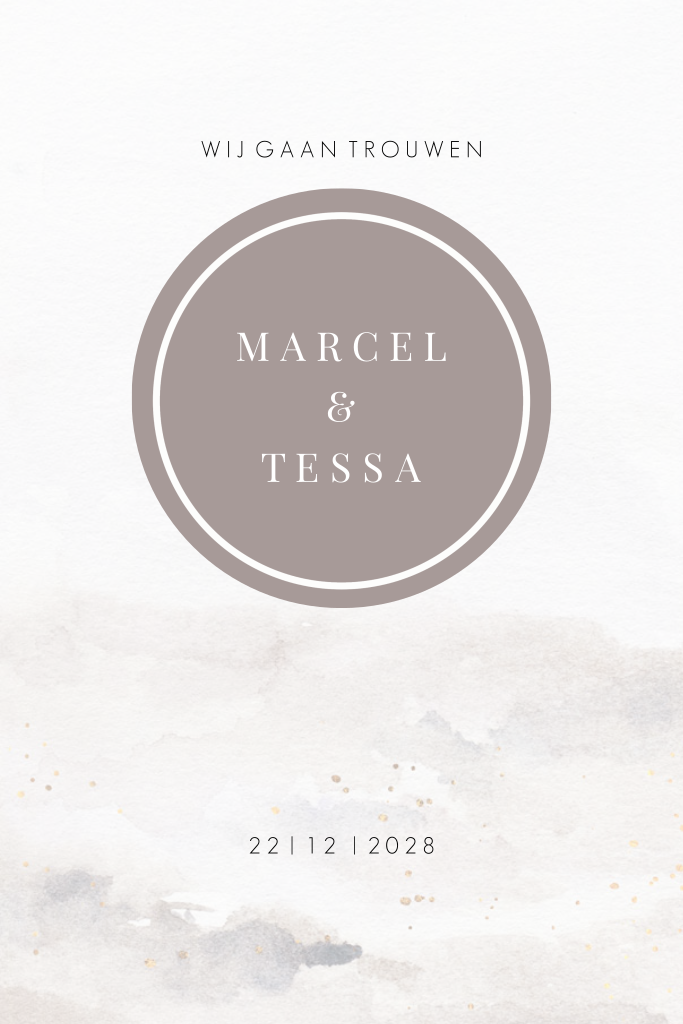 Trouwkaart abstracte watercolor bergen taupe roze. (23647)