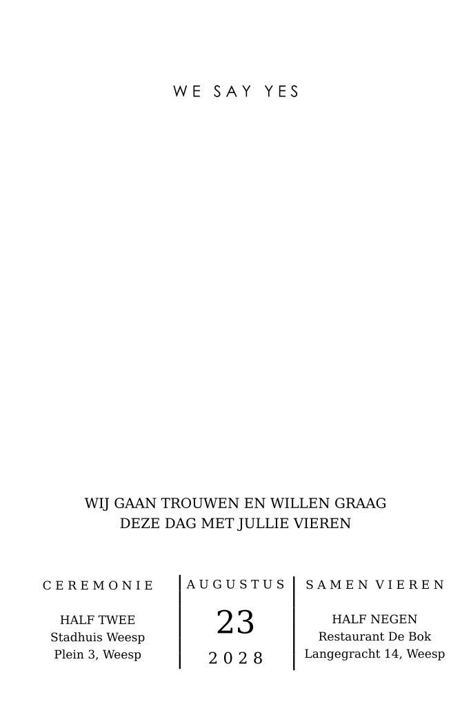 Minimalistisch en moderne trouwkaart met goudfolie op de voorkant. Deze kaart heeft door de ronde hoeken een extra luxe uitstraling en tevens klassieke touch. (23405)Wil je deze kaart maar dan dubbel zodat je meer ruimte hebt? Dat kan! Neem daarvoor contact met ons op.