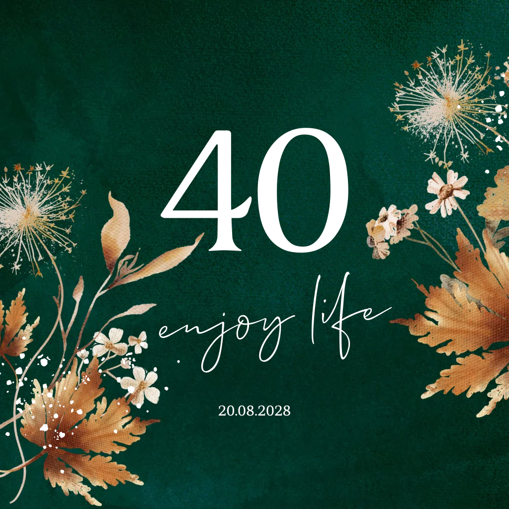 Uitnodiging 40 jaar verjaardag groen met bloemen