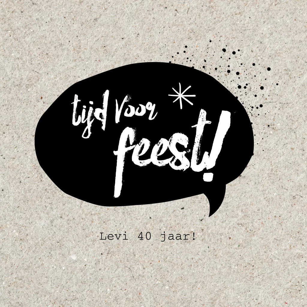 Uitnodiging voor een 40e verjaardag met kraft kleurige achtergrond en zwarte tekst ballon. (23596)