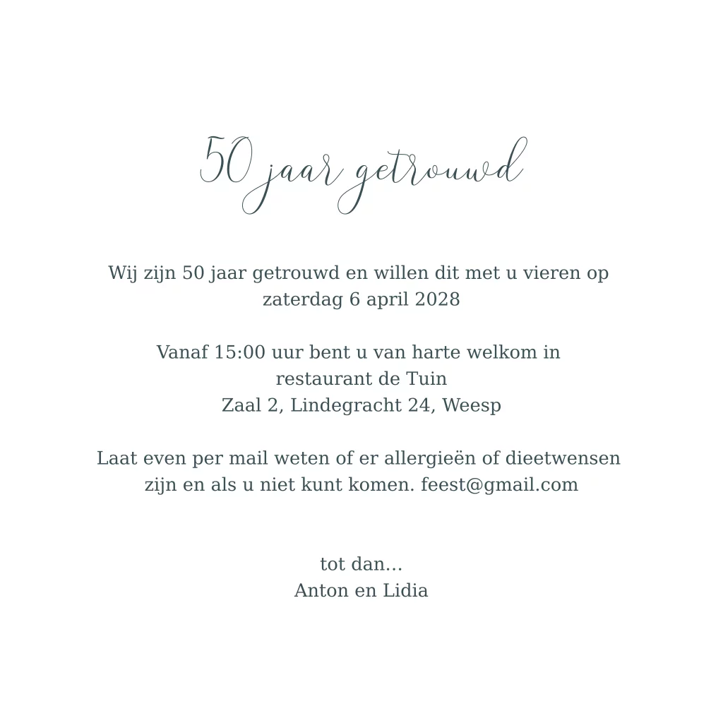 Jubileum uitnodiging 50 jaar getrouwd met goudfolie