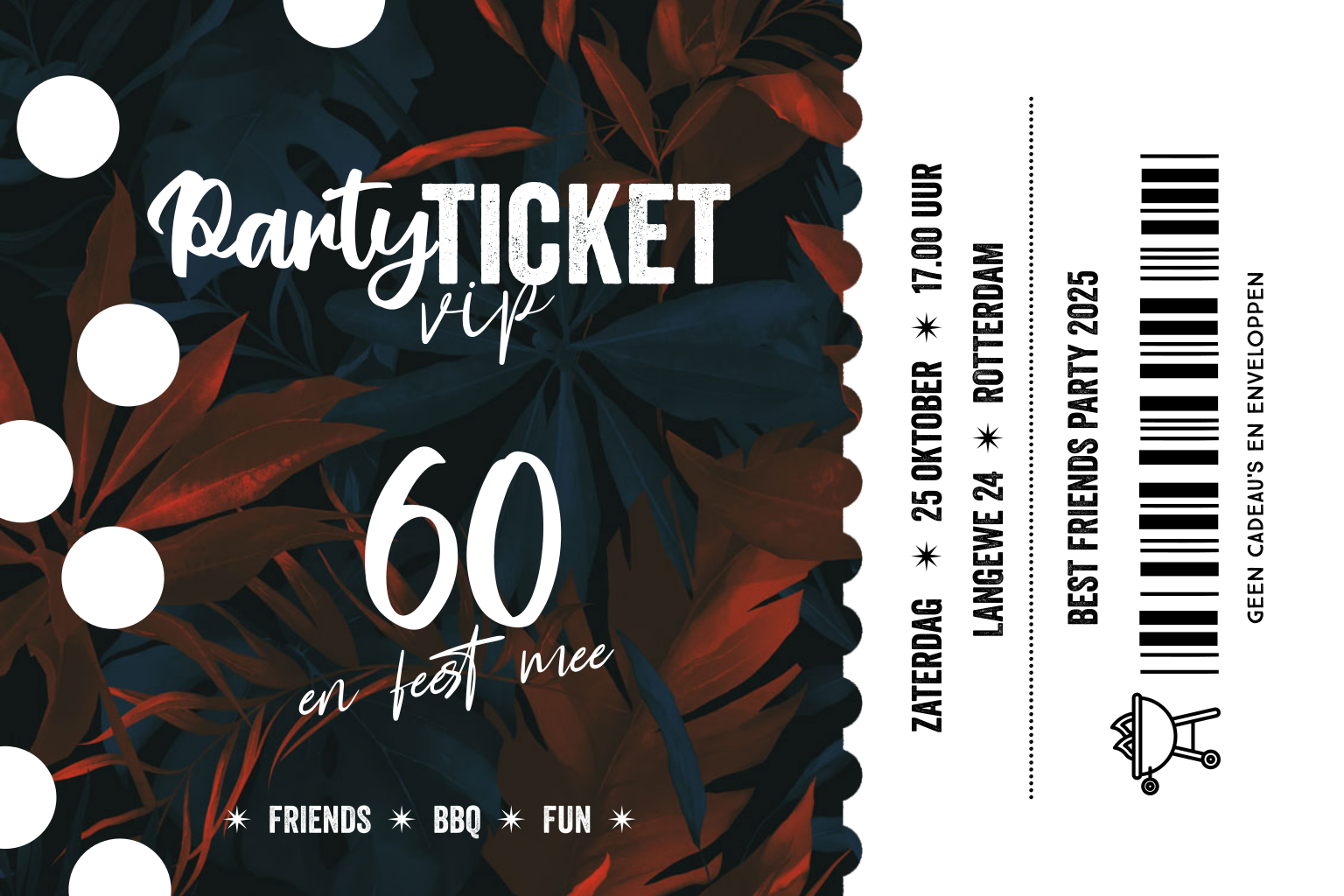 Uitnodiging 60ste verjaardag bbq ticket folie