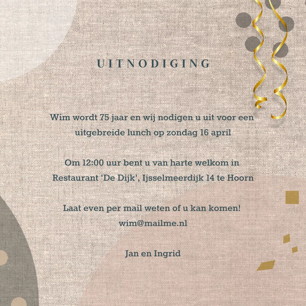 Uitnodiging verjaardag 75 jaar linnen look met slingers