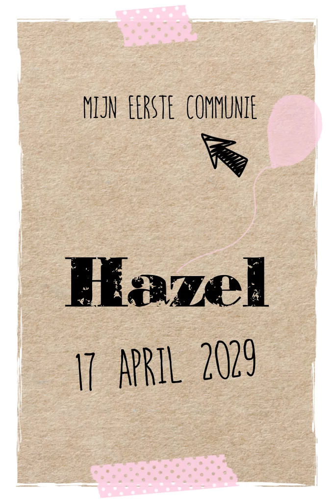 Hippe communie uitnodiging met kraft kleurige achtergrond. (23579)