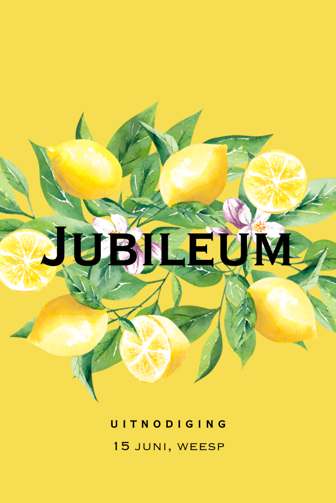 Vrolijke en frisse jubileum uitnodiging met citroenen. (23416)