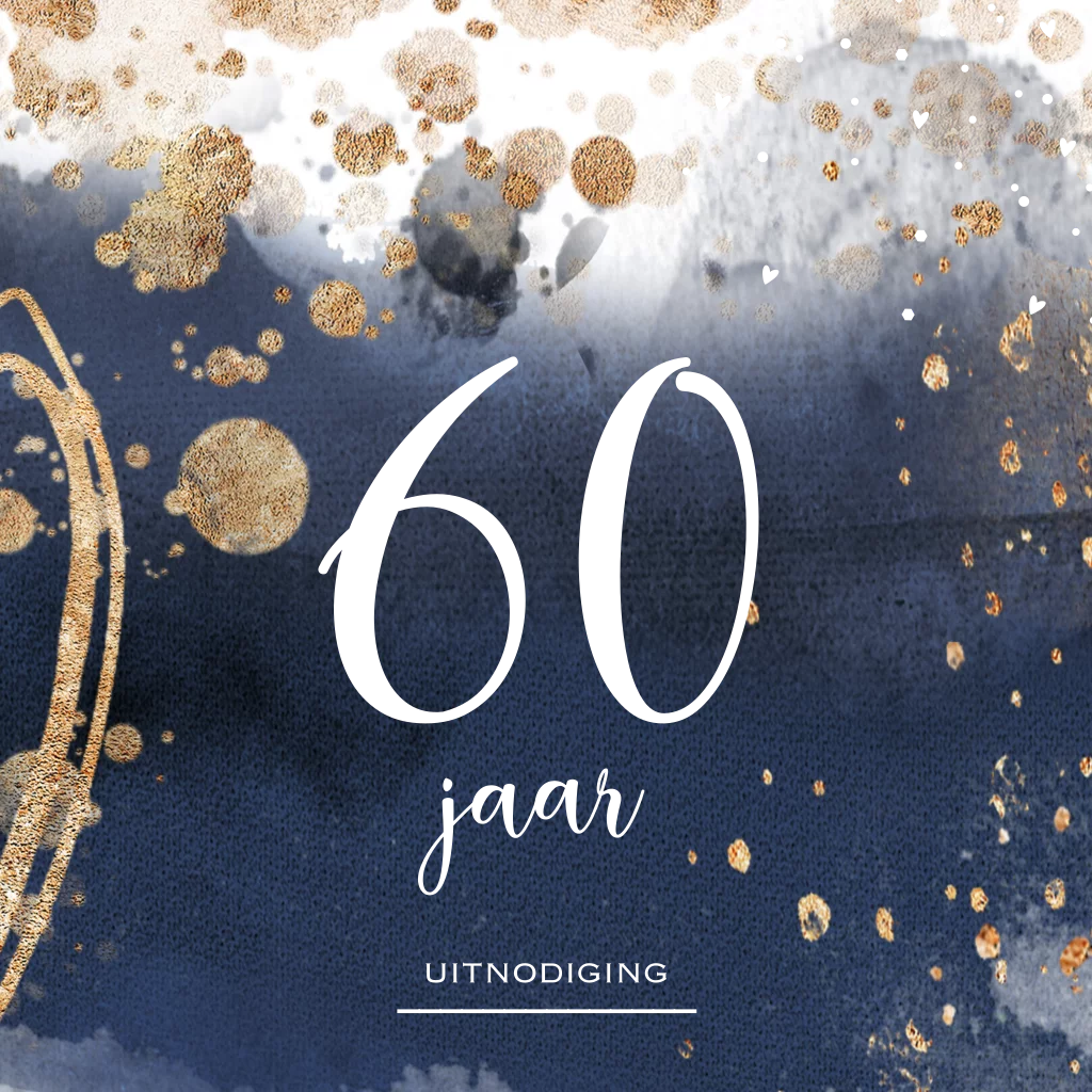 Uitnodiging voor een 60e verjaardag blauw waterverf en foliedruk