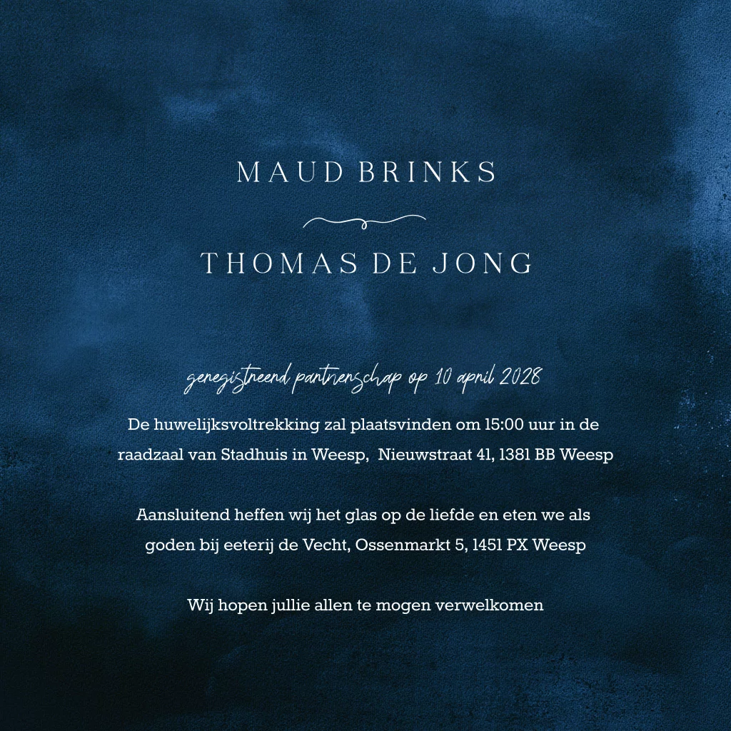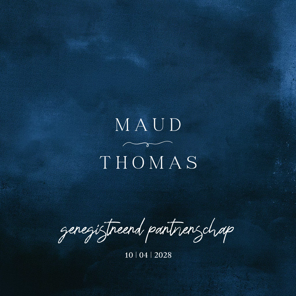 Moderne strakke uitnodiging geregistreerd partnerschap met blauwe achtergrond en goudfolie druk. (23322)