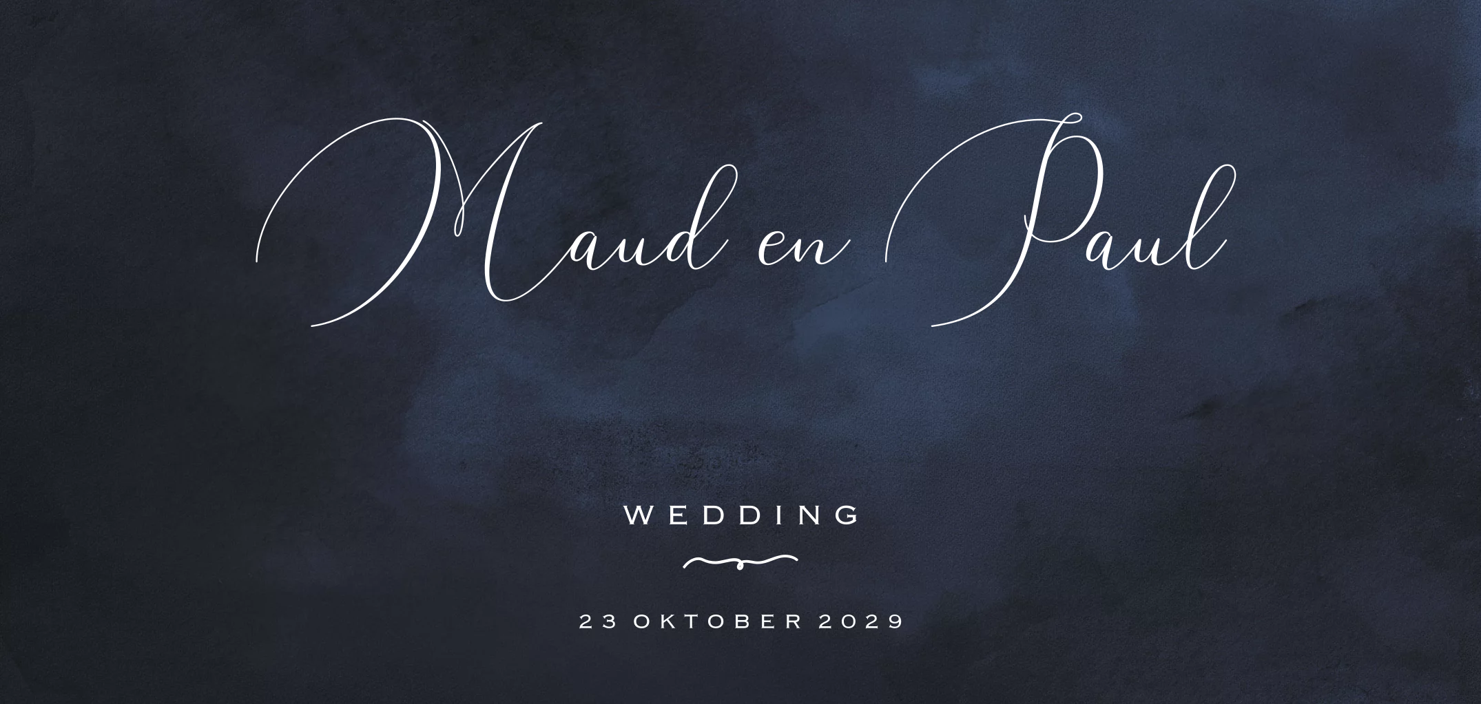Trouwkaart met donkerblauwe velvet look achtergrond en foliedruk. Mooie typografie van klassiek tot modern design. (23318)