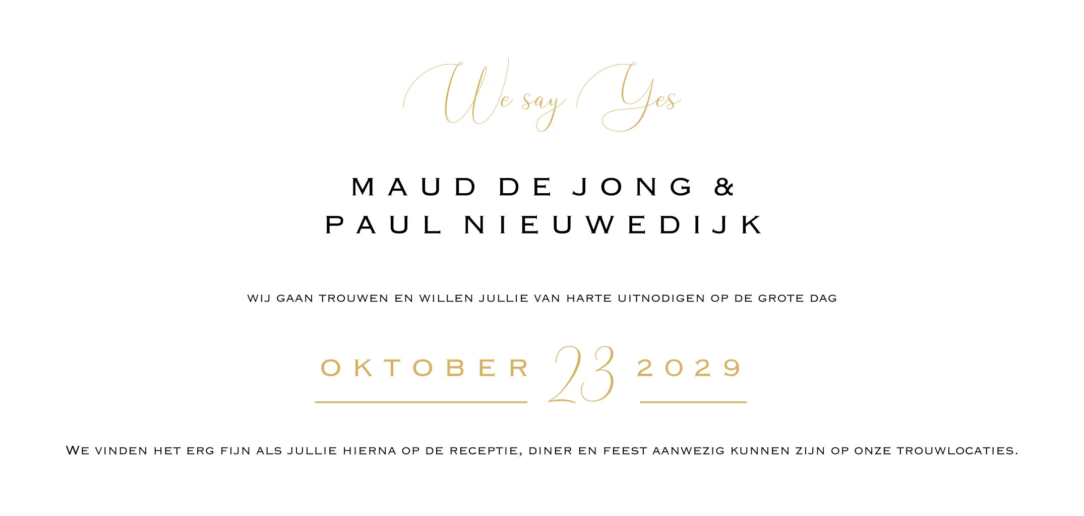Moderne trouwkaart met goudfolie en donkerblauwe achtergrond
