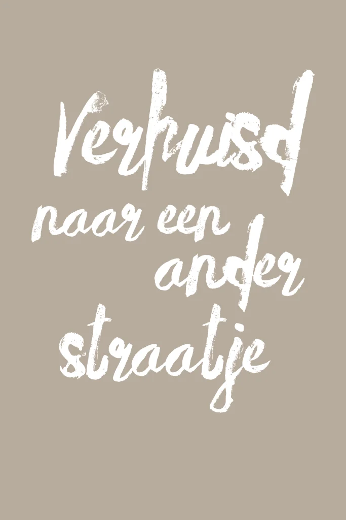 Enkele verhuiskaart met eigenwijze tekst in het handlettering: verhuisd naar een ander straatje Meerdere formaten mogelijk, 2-zijdes die je kan opmaken! (24104)