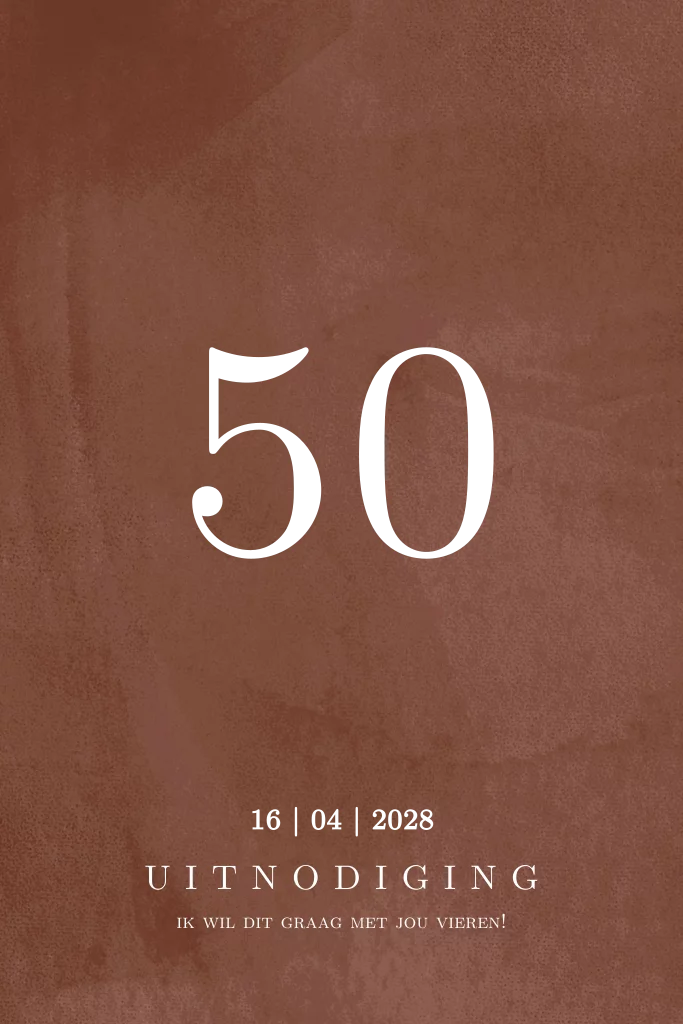 Uitnodiging voor een 50e verjaardag met foliedruk en cognac kleurige achtergrond. (23205)